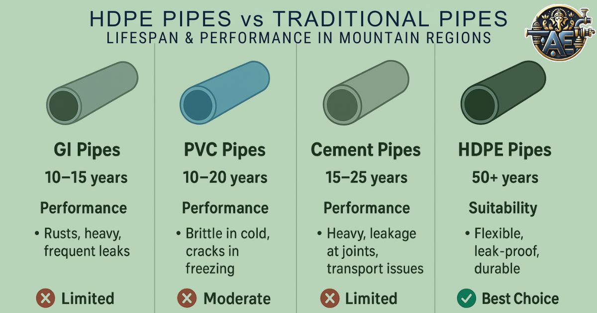 HDPE Pipes vs Traditional Pipes: Lifespan & Performance in Mountain Regions